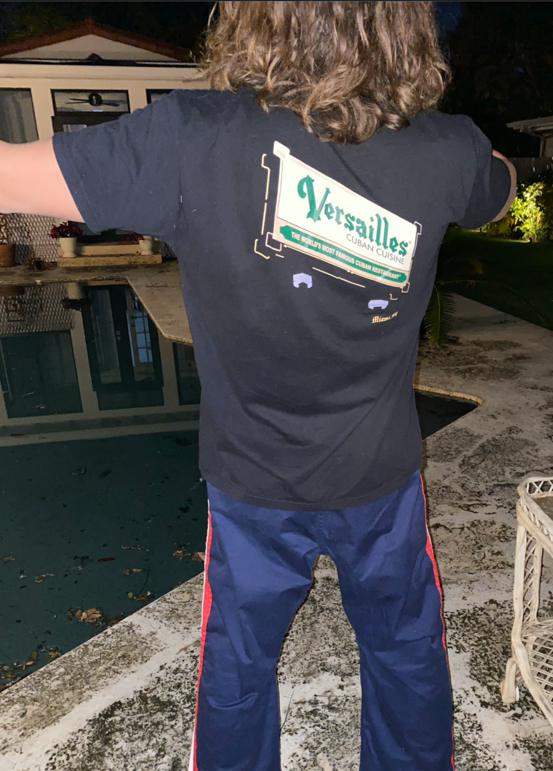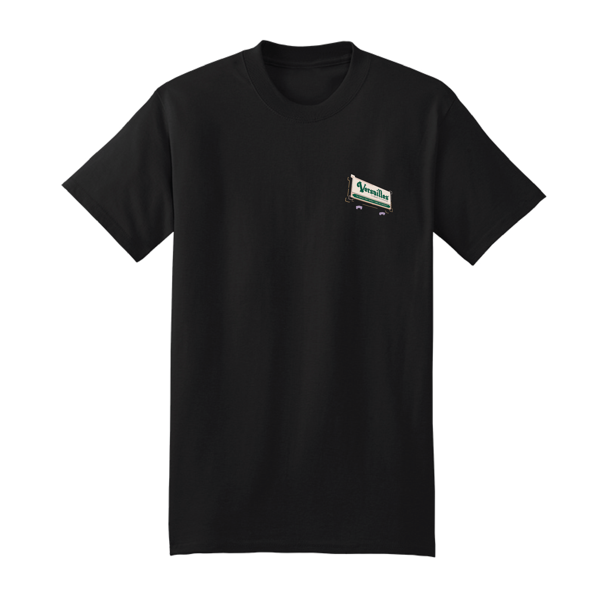 Black short sleeve tee of iconic Versailles neon street signage.